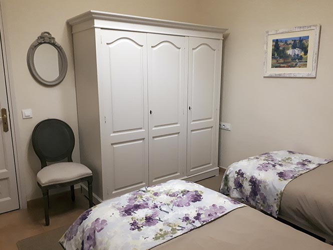 Situado en la segunda planta de la casa, la habitación Beige consta de dos camas de 90 cm.