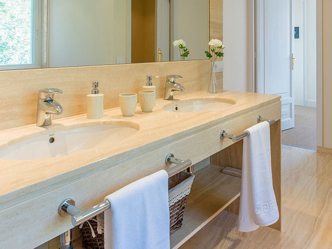 ⦁ Dormitorio con cama 1,50 cm ⦁ Vestidor ⦁ Baño ⦁ Almohadas, cojines y edredón nórdico ⦁ Juego de sábanas y toallas ⦁ Baño con bañera y ducha ⦁ Artículos de baño.